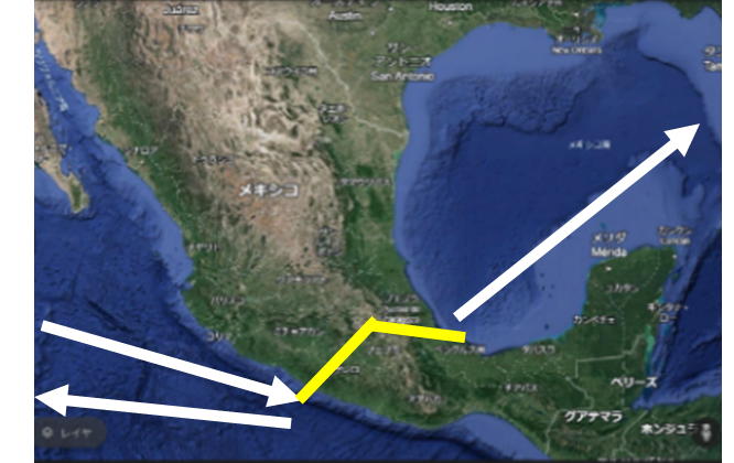 さあ、歴史をずっと遡りましょう。氷河期まで戻ると、今から約2万年以上前にベーリング陸橋を渡ってアジアからアメリカ大陸へ人類が移動しました。そこまで戻るの?と自問自答をしました。「日本とメキシコの往来」という視点では、この大移動は直接的な交流とは見做されないので、「古代にアジアから人類がアメリカ大陸へ渡ったが、メキシコに関して交流は無かった」と言うのが一般の認識でしょう。但し、太古の昔に今のメキシコの地へ日本の文化を携えて辿り着いた民族が居たに違いない、と私は勝手に感じています。