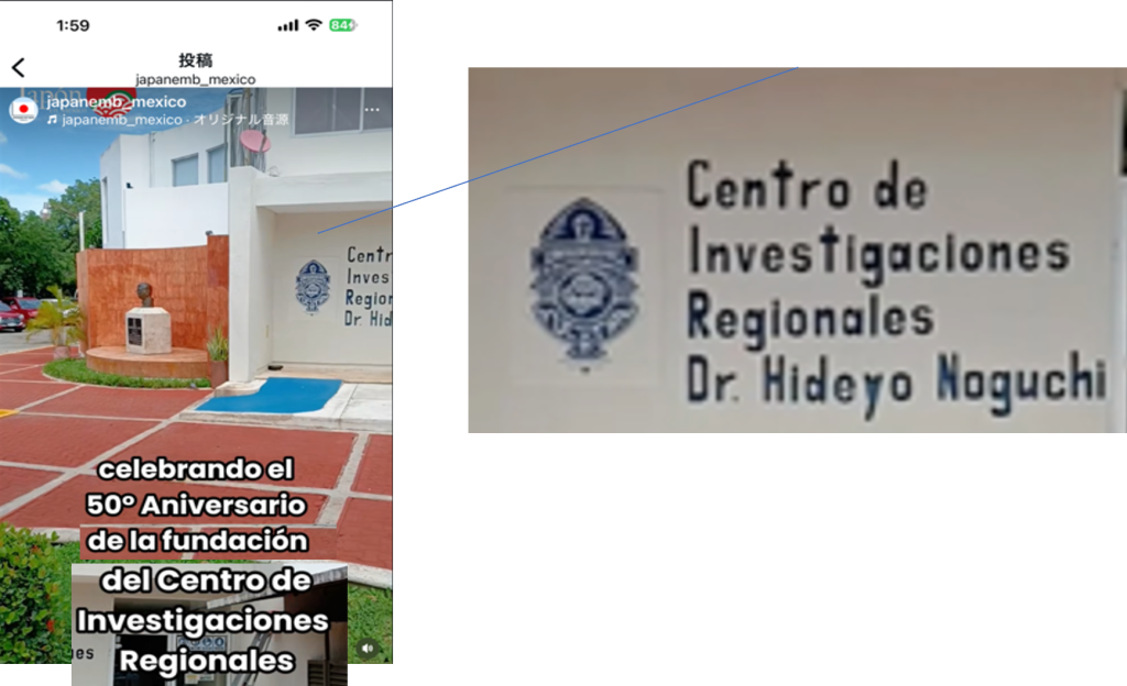 最後に、在メキシコ日本大使館のインスタを見ていたところ、何と野口英世博士が100年も前にユカタン州MERIDA市を訪問して、中南米を含めた黄熱病の撲滅運動に携わっていた事が報じられていました。野口博士を記念した地域研究センターがメリダのユカタン自治大学構内に在るのですね。そのファウンデーションが創立50周年のお祝いを行った事が紹介されていました(10月17日か18日)。ネット検索すると、野口博士はロックフェラー研究所から派遣されて、1919年12月にメリダに到着しています。