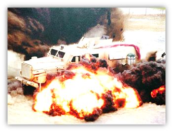 MRAP:対爆試験中のクーガー装甲車