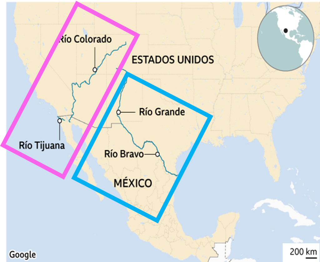 この条約は、メキシコから米国(とくにテキサス州南部)へリオ・グランデ(Rio Grande)川などから水を供給し、逆に米国からメキシコのティフアナ(Tijuana)等にコロラド川(Colorado River)経由で水を供給するという仕組みを定めています(下図)。