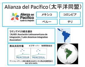 第5回投稿の最後のページに、メキシコがFTAを締結している国のリストを挿入いたしましたが、その中にはラテン世界において重要な役割を果たしている協定が含まれています。日本におられるメキシコ・ビギナーの方には聞きなれない機関かもしれませんが、メキシコはラテン世界で大きな役割を担っています。具体的には、太平洋同盟、ラテンアメリカ統合連合、そして有名な南米共同市場(MERCOSUR)における活動が挙げられます。自由貿易を標榜するメキシコとして、すでに輸出先の多角化を進めているところですが、これらラテン世界の連合体の今後の推移には引き続き注目したいと考えています。
