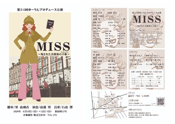 先日、新宿村LIVEでゆーりんプロデュース公演「MISS」を観劇した。配役はすべて声優で構成されており、声のプロが舞台上でどのような表現を見せるのかという点でとても興味深く感じた。228席の客席は超満員で、開演前から若い支持層の多さがひと目で分かるほどの活気に包まれていた。